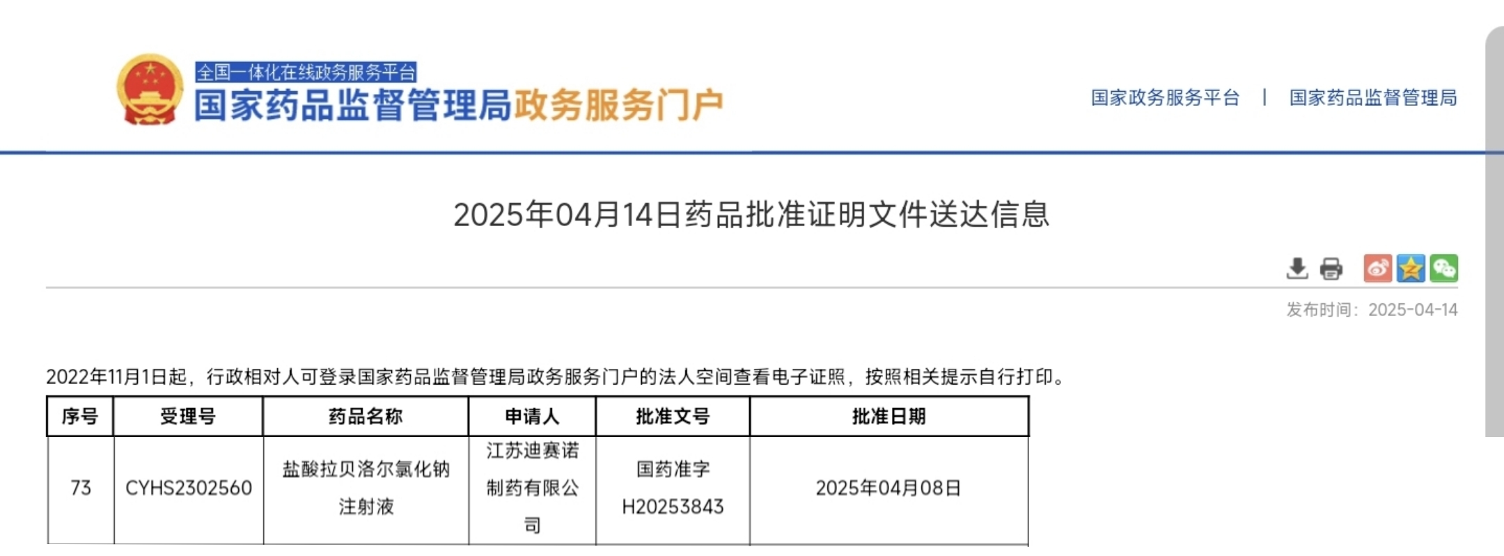 2025年4月8日,AG手机登录入口的盐酸拉贝洛尔氯化钠注射液(国药准字H20253843)成功获得国家药品监督管理局(NMPA)批准上市,该产品是公司的化药3类仿制药,是该品种药物的国内首仿。这一成果标志着公司在心血管领域的产品布局迈上新台阶,也为广大患者提供了更优质的用药选择。